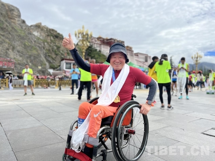 “馬拉松是一項(xiàng)極限運(yùn)動(dòng),這里是海拔最高的馬拉松比賽,我是本屆比賽殘疾人運(yùn)動(dòng)員中歲數(shù)最大的。沿途的風(fēng)景很美,后勤保障也做的很到位,希望有更多的殘疾人像我一樣走出來?!眮碜院幽下尻柕臍埣踩诉\(yùn)動(dòng)員商長(zhǎng)斌今年61歲,完賽后他臉上洋溢著難以掩飾的笑容接來工作人員向他敬獻(xiàn)哈達(dá)和獎(jiǎng)牌。