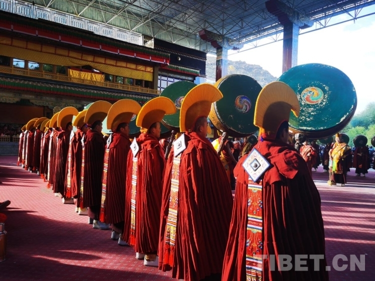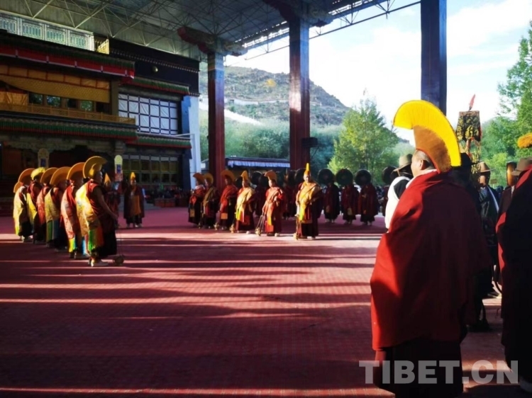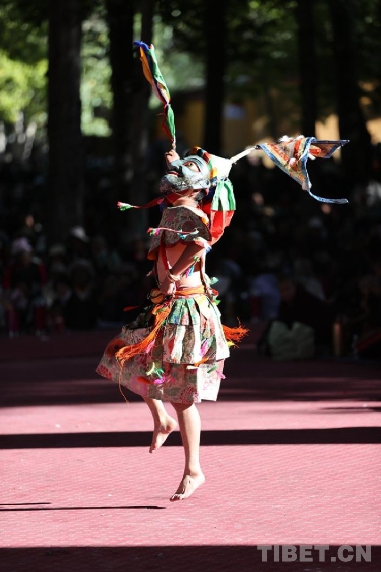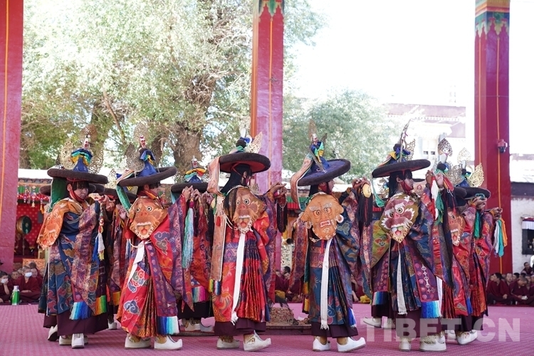 中國西藏網(wǎng)訊 9月19日,扎什倫布寺舉行的為期三天的“羌姆”表演落下帷幕?!扒寄贰笔怯缮畟H表演的一種宗教舞蹈,也稱跳神。