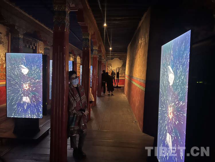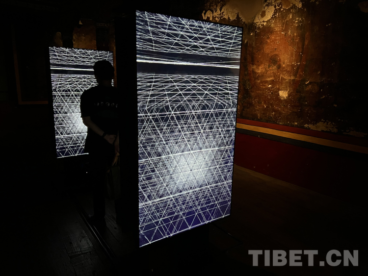展覽所處的吉本崗藝術(shù)中心前身為“吉崩崗拉康”,是西藏首座古建筑保護性改造而成的美術(shù)館。這是一座“宇宙模型”,更擁有“神圣空間”的歷史文本:19世紀,西藏地方政府依照藏式建筑中最具代表性的立體壇城結(jié)構(gòu)建造,曾是拉薩古城地標,凝聚了西藏藝術(shù)、建筑、歷史精粹。在百年時間里,吉本崗靜穆地見證著拉薩古城驅(qū)逐英國入侵者、和平解放、民主改革等一系列重要的歷史變遷。如今在這座“完美壇城”內(nèi)又加入了數(shù)字元素,讓參觀者超越百年時間軸線,靜心感受無限宇宙。