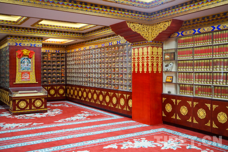 在西藏民族大學(xué)圖書館的藏學(xué)信息研究中心內(nèi),房間四周精致的藏式書柜中珍藏著包括德格版、拉薩版、北京版等多個(gè)版本《藏文大藏經(jīng)》,還有法藏、英藏、俄藏、國家圖書館收藏的多個(gè)版本《敦煌藏文文獻(xiàn)》,以及《中華大藏經(jīng)》對勘本、《藏傳佛教高僧弘法手跡珍典》《甘肅青海四川民間古藏文苯教文獻(xiàn)》《中國藏醫(yī)藥影印古籍珍本》等多種珍本,這些典籍是中華民族傳統(tǒng)文化中璀璨的瑰寶,跨越著時(shí)間和地域與民大學(xué)子進(jìn)行著時(shí)空對話。