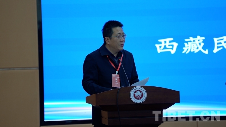 圖為西藏民族大學(xué)黨委副書(shū)記、校長(zhǎng)羅旺次仁代表學(xué)校致辭 攝影:陳浩力