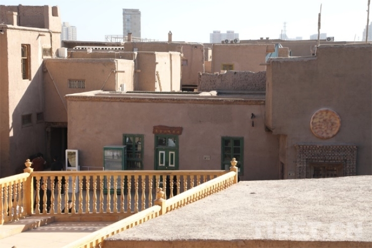 中國西藏網(wǎng)訊 在中國新疆維吾爾自治區(qū)喀什市,在繁榮熱鬧的喀什古城對面,僅一條馬路之隔,坐落著代表喀什傳統(tǒng)建筑靈魂的高臺民居。高臺民居又名闊孜其亞貝希老城區(qū),它位于吐曼河西岸一處高約30米、長寬約400米的黃土高臺上,其面積約57000平方米。“闊孜其亞貝?!庇懈哐峦撂盏囊馑迹蚨吲_民居又被稱為高崖上的土陶人家。