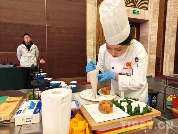 比賽現(xiàn)場,選手們利用自身烹飪技能,以及結(jié)合西藏地域特點(diǎn)、民俗文化等方面進(jìn)行創(chuàng)新烹飪,現(xiàn)場熱鬧而有序。從挑選食材、烹飪、營養(yǎng)搭配到擺盤設(shè)計(jì)……選手們施展渾身解數(shù),制作出多道令現(xiàn)場觀眾為之驚艷的菜品,現(xiàn)場觀眾紛紛點(diǎn)贊,頻頻用手機(jī)記錄色香味俱全的美食。