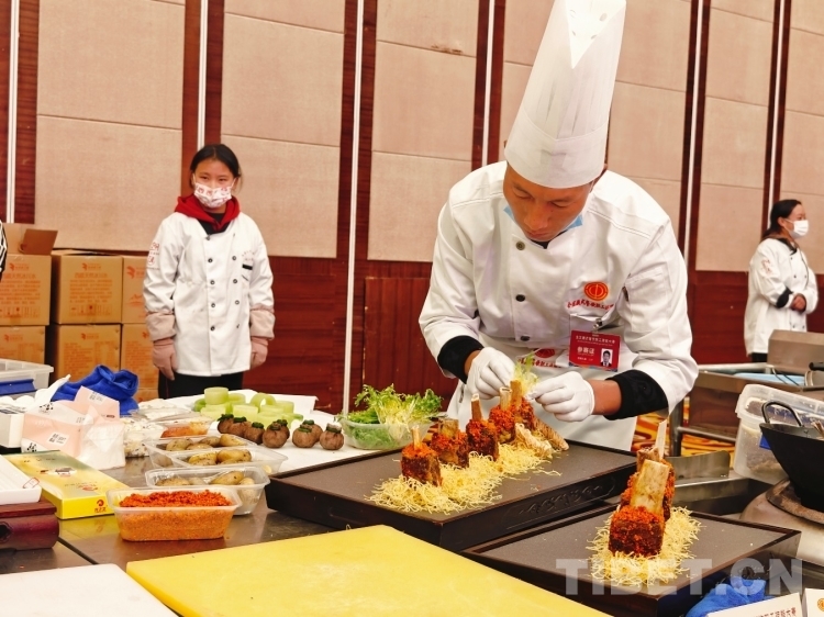 獨(dú)具藏民族特色和西藏本土特點(diǎn)的藏式烹調(diào)比賽現(xiàn)場,參賽選手們分三輪進(jìn)行角逐,每位參賽選手要在規(guī)定時(shí)間內(nèi)獨(dú)立完成2道使用藏式烹飪手法或西藏特色食材制作的菜品,1道指定菜品和1道自選菜品。