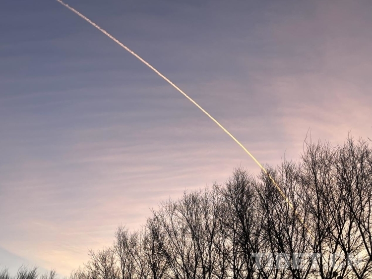 圖為飛機越過粉藍間接的日出天空 攝影:王妍丹