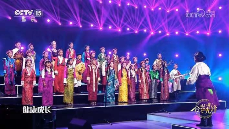 圖為西藏珠峰少年合唱團(tuán)登上中央廣播電視總臺音樂頻道合唱節(jié)目《合唱先鋒》舞臺