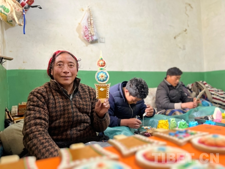 2月4日,拉薩沖賽康附近的一座傳統(tǒng)藏式院落里,來自日喀則市仁布縣普松鄉(xiāng)那仁村的酥油花藝人頓珠和他的三個(gè)兒子正在忙碌地制作、銷售酥油花,以應(yīng)對(duì)供不應(yīng)求的節(jié)日市場(chǎng)。精巧的做工、明確的分工,為他們帶來了不菲的收益。
