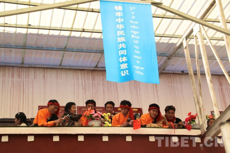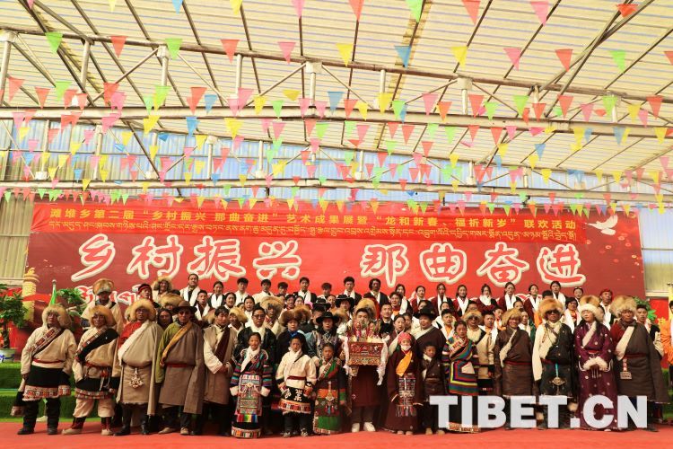中國(guó)西藏網(wǎng)訊 2月10日,中國(guó)西藏信息中心“新春走基層”青藏線(xiàn)采訪(fǎng)組一行,來(lái)到西藏自治區(qū)那曲市安多縣灘堆鄉(xiāng),適逢當(dāng)?shù)卦谂e辦灘堆鄉(xiāng)第二屆“鄉(xiāng)村振興 那曲奮進(jìn)”藝術(shù)成果展暨“龍和新春、福祈新歲”聯(lián)歡活動(dòng)。采訪(fǎng)組一行來(lái)到鄉(xiāng)政府對(duì)面的灘堆鄉(xiāng)文化站,記者在現(xiàn)場(chǎng)看到許多穿著具有當(dāng)?shù)孛褡逄厣椀娜嗽诖司奂T诤闷嫘牡尿?qū)使下,經(jīng)詢(xún)問(wèn)當(dāng)?shù)馗刹坎胖?,為喜?024春節(jié)和藏歷新年,感激黨和國(guó)家的關(guān)心關(guān)懷,歌頌如今來(lái)之不易的幸福生活,鄉(xiāng)村文藝隊(duì)特此精心準(zhǔn)備了文藝節(jié)目,以嶄新的面貌和昂揚(yáng)的精神展現(xiàn)新時(shí)代牧民群眾的精神風(fēng)貌和幸福生活。
