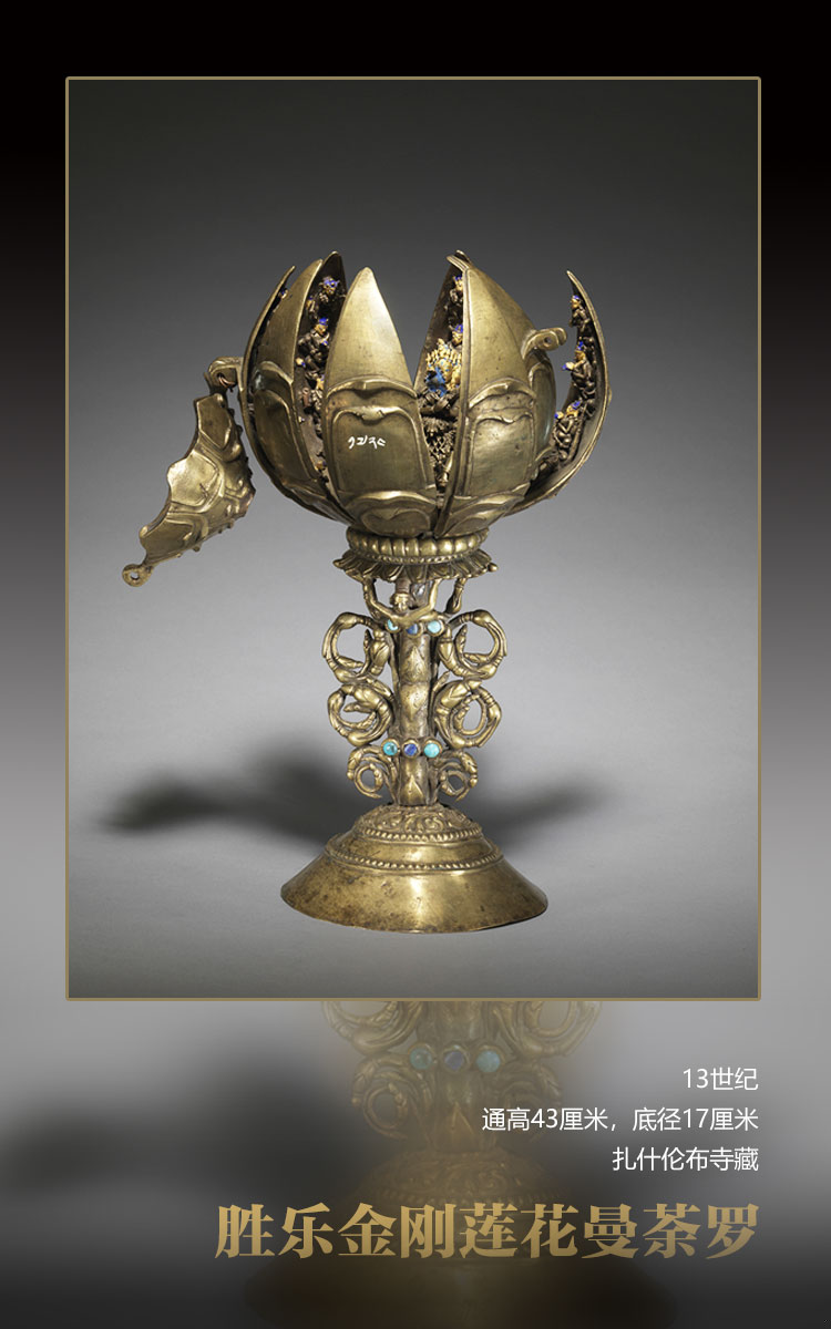 類似作品保存實(shí)例頗多,且多以無(wú)上瑜伽部本尊曼荼羅為主題。這種樣式的曼荼羅原型很可能來(lái)自印度波羅時(shí)期的作品。不過(guò)此尊造像做工質(zhì)樸,裝飾簡(jiǎn)略,應(yīng)是西藏工匠早期模仿波羅風(fēng)格的作品。(文圖資料來(lái)源:澳門藝術(shù)博物館 中國(guó)西藏網(wǎng) 記者/易文文 趙佳 呂靜 王東 姚浩然)