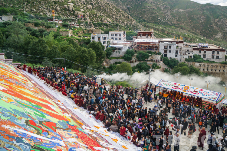 圖為2023年拉薩雪頓節(jié)哲蚌寺展佛現(xiàn)場(chǎng)。雪頓節(jié)距今已有近千年歷史,近年來(lái)雪頓節(jié)在各級(jí)政府的保護(hù)和發(fā)展中,已從單純的民俗文化節(jié)日成為集傳統(tǒng)展佛、體育競(jìng)技、文藝匯演、經(jīng)貿(mào)洽談、商品展銷、旅游推介、民俗體驗(yàn)等為一體的復(fù)合型節(jié)日。 攝影:趙振宇