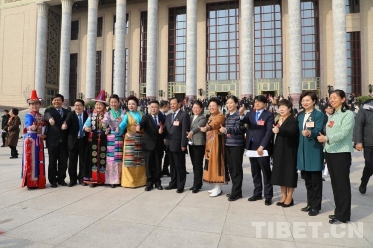 圖為2024年全國政協(xié)會議閉幕后,邊巴拉姆(左五)與全國政協(xié)委員們在人民大會堂前留影 攝影:王茜