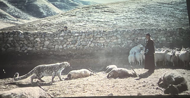 影片的結(jié)尾似乎很突然,雪豹終究沒有死在受損牧人暴怒的情緒和揮舞的錘子下,在人類文明的關(guān)照下,被主動解圍,回歸雪山,與小雪豹相會相伴。只有萬導(dǎo)這種深邃包容、沉著冷靜又充滿睿智的作家、藝術(shù)家才能挖掘和表現(xiàn),這里蘊(yùn)含著生命的慈悲和世人的智慧。對此,我們還有哪些拷問呢?
