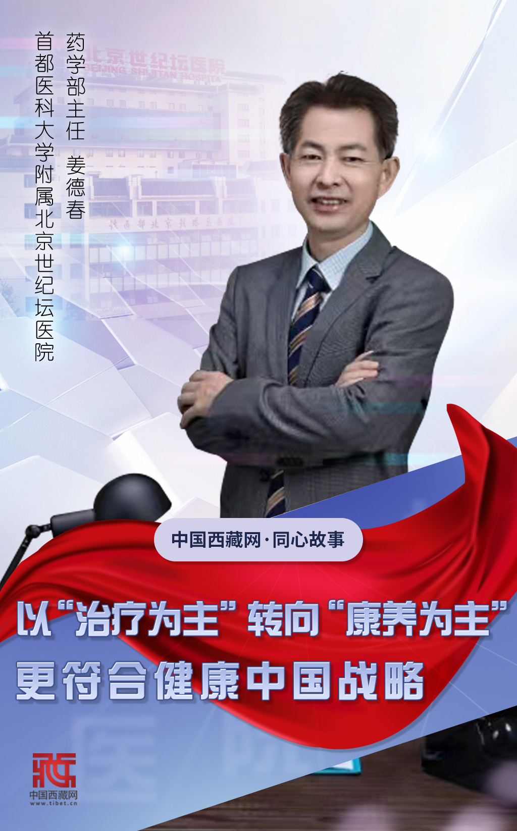 姜德春認為,我們國家實施的“健康中國”戰(zhàn)略就是要以健康為主。以前我們醫(yī)療模式是以“治療為主”,現(xiàn)在開始從“治療為主”向“預防為主”轉變,保持健康就是一種預防的狀態(tài)。通過康養(yǎng)獲得更高水平的生活質量,這是人民對健康的需求,也是實現(xiàn)“健康中國”戰(zhàn)略的最大目標。作為藥師,他認為從“治療為主”轉向“康養(yǎng)為主”是符合時代發(fā)展,實現(xiàn)健康中國的一個非常重要的舉措,意義深遠。(中國西藏網(wǎng) 記者/趙振宇 曹美晴 海報設計/郝蕊)