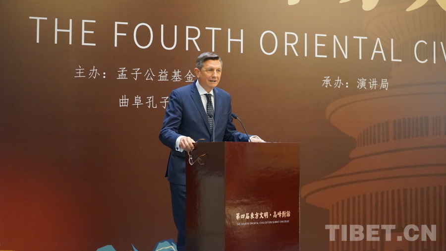 中國西藏網(wǎng)訊 5月15日,以“孟子智慧:文明交流互鑒,奔向人類命運(yùn)共同體”為主題第四屆東方文明高峰對話在北京舉行。斯洛文尼亞前總統(tǒng)博魯特·帕霍爾、世界孔子宗親聯(lián)誼總會執(zhí)行會長孔眾、北京師范大學(xué)中國易學(xué)文化研究院院長張濤等嘉賓分別作主旨發(fā)言。