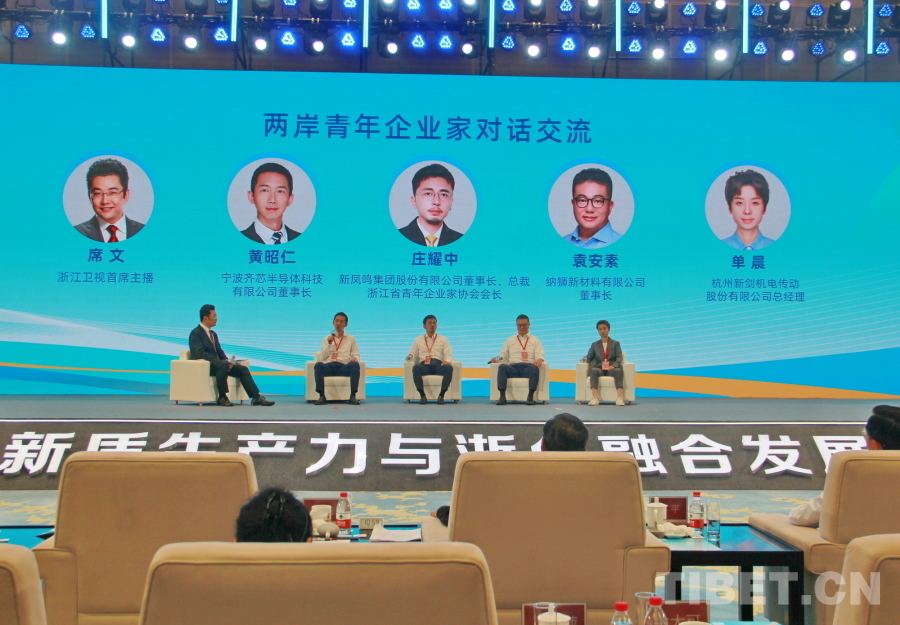 開幕式上,阿里巴巴集團(tuán)董事會主席蔡崇信,新華三集團(tuán)總裁兼CEO于英濤,富士康工業(yè)互聯(lián)網(wǎng)股份有限公司董事長、總經(jīng)理鄭弘孟,臺灣工業(yè)總會副理事長、敏實(shí)控股董事會主席秦榮華等兩岸企業(yè)家代表圍繞“新質(zhì)生產(chǎn)力與浙臺融合發(fā)展”進(jìn)行了主旨演講。納獅新材料董事長袁安素、寧波齊芯半導(dǎo)體科技有限公司首席執(zhí)行官黃昭仁、新鳳鳴集團(tuán)董事長莊耀中、杭州新劍機(jī)電傳動股份有限公司總經(jīng)理單晨等兩岸青年企業(yè)家圍繞“以科技創(chuàng)新、產(chǎn)業(yè)與人才合作助推加快形成新質(zhì)生產(chǎn)力”開展了對話交流。