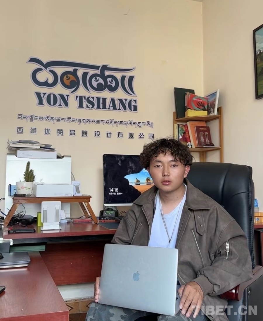 次仁頓珠是學(xué)院2022年平面設(shè)計專業(yè)的畢業(yè)生,也是全國第一屆職業(yè)技能大賽“西部技能之星”獲得者,我們到訪時他剛好回校做單元展。次仁頓珠畢業(yè)后和四個合伙人一起在拉薩創(chuàng)業(yè),創(chuàng)辦了優(yōu)贊品牌設(shè)計有限公司,主要業(yè)務(wù)包括產(chǎn)品包裝設(shè)計、logo設(shè)計和品牌設(shè)計。創(chuàng)業(yè)伊始全靠幾個合伙人自己出去推銷,如今經(jīng)過老客戶口口相傳,很多客戶主動來找他們,生意越來越好?!皠?chuàng)業(yè)兩年多,我大概分紅了40多萬,今年我們幾個合伙人都買了車。未來我們計劃擴大公司的店面,好好裝修,然后開始線上直播,以后在拉薩買了房子從昌都接媽媽一起來住?!贝稳暑D珠向我們介紹,笑容中帶著羞澀與驕傲。