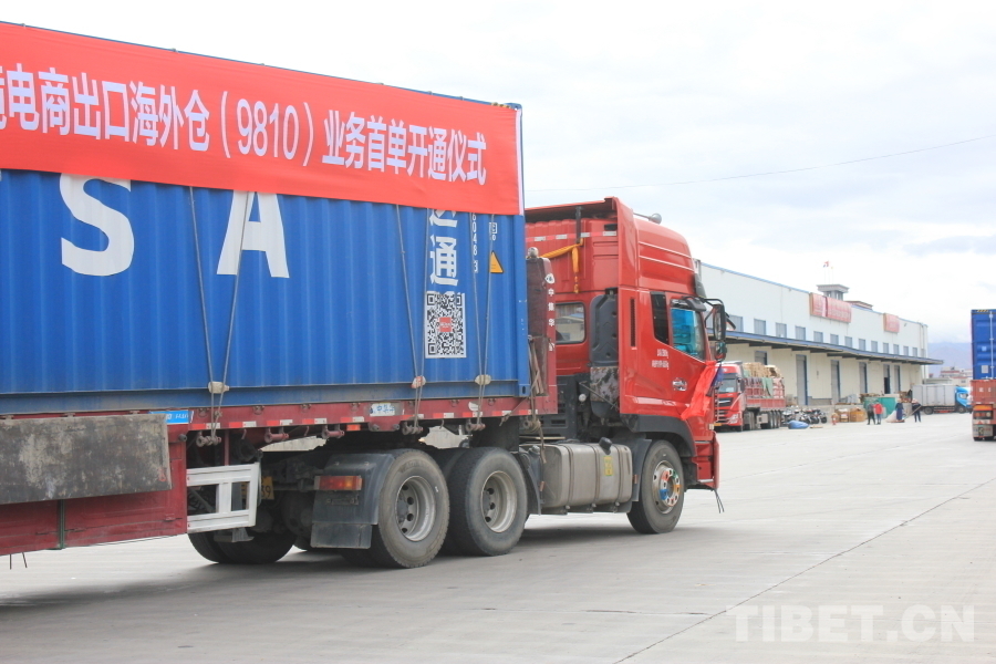 圖為中國(拉薩)跨境電子商務(wù)綜合試驗區(qū)跨境電商出口海外倉(9810)業(yè)務(wù)首單貨車向位于尼泊爾加德滿都市的海外倉發(fā)車 攝影:張曉琪
