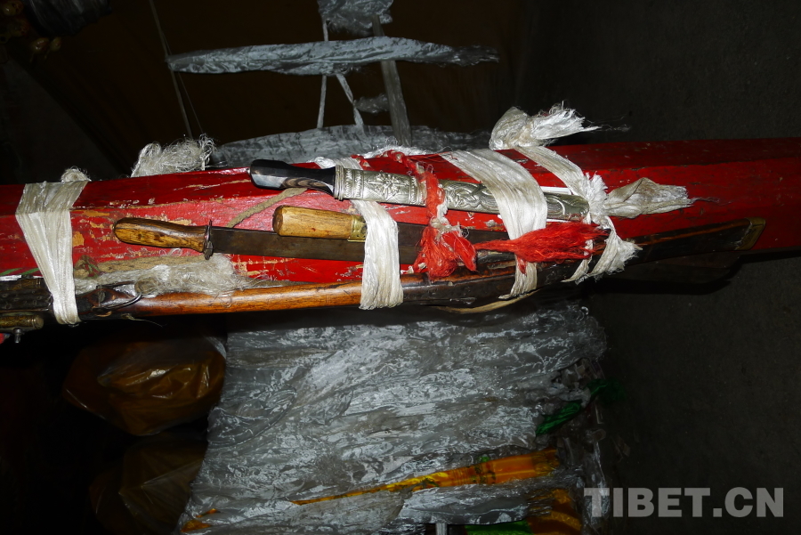 曾在抗英戰(zhàn)爭(zhēng)時(shí)使用過(guò)的武器,至今留存乃寧寺。攝影:平措扎西