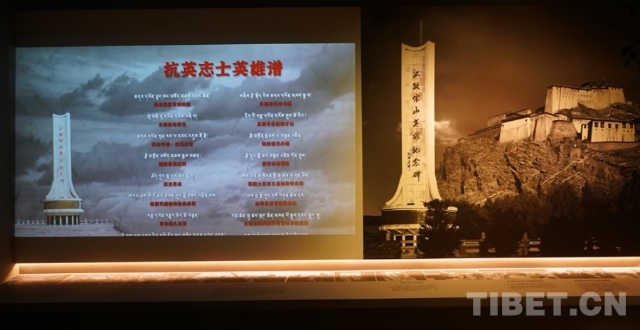 圖為“宗山號角——紀(jì)念西藏江孜抗英保衛(wèi)戰(zhàn)120周年主題展”中滾動(dòng)播放抗英志士英雄譜 攝影:王茜