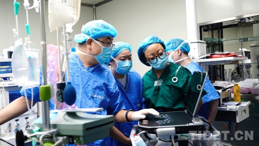 圖為清華大學(xué)第一附屬醫(yī)院心臟中心彩超專家唐秀杰(左一)在為患兒做手術(shù) 攝影:李錄場(chǎng)