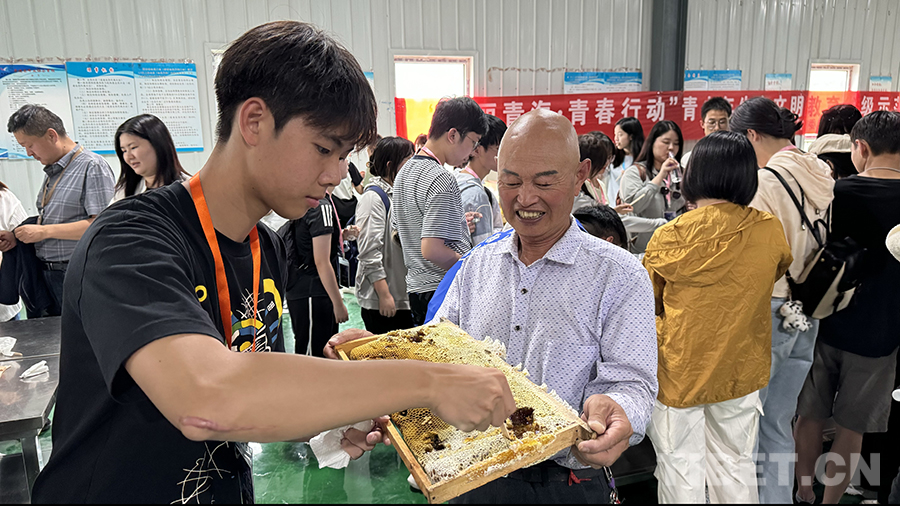 來自香港仁濟(jì)醫(yī)院第二中學(xué)的朱紫賢平時(shí)喜歡在食物中加入蜜糖,“但直到今天,我才對于蜜蜂采蜜有了進(jìn)一步的認(rèn)識?!彼朔藢γ鄯涞目謶?,近距離觀察到蜜蜂有條不紊的工作,也初步了解了蜂蜜的品質(zhì)會隨著海拔高度的增加而提升,以及蜂蜜的味道會因蜜源地域或鮮花季節(jié)的不同而產(chǎn)生變化。“青海屬于高海拔地區(qū),我認(rèn)為中華蜜蜂所采的蜜露營養(yǎng)價(jià)值很高很珍貴,很高興今天學(xué)到這些蜂文化知識。”