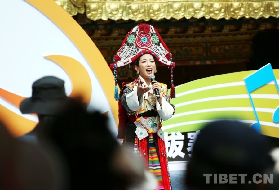 圖為決賽現(xiàn)場獲得“民間歌后”的稱號(hào)的貢桑德吉正在演出 攝影:王佳豪