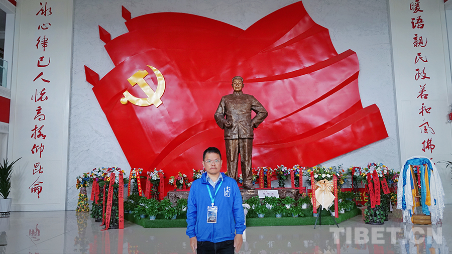 圖為青海省港區(qū)政協(xié)委員、本次研學(xué)團副團長王偉杰在尕布龍時代楷模紀念館。攝影:李泓慶