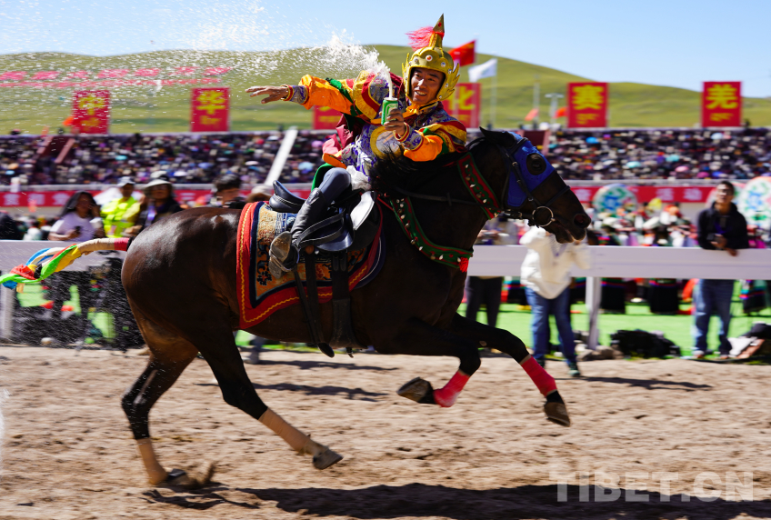 本屆賽馬節(jié)邀請了來自青海、四川和西藏自治區(qū)內各地(市)優(yōu)秀的名馬參與到相關賽事當中。那曲市十一縣區(qū)的牧民群眾上演了多彩服飾秀,將非遺穿在“身上”,展現(xiàn)了藏北羌塘繽紛的服飾色彩以及深厚的文化底蘊。開幕式上,格薩爾史詩在傳唱,馬背上的少年在飛馳,精彩的馬術表演呈現(xiàn)出磅礴的氣勢和颯爽的英姿,展現(xiàn)著那曲人民昂揚奮斗的精神風貌,擘畫著社會主義現(xiàn)代化新那曲的宏偉藍圖。