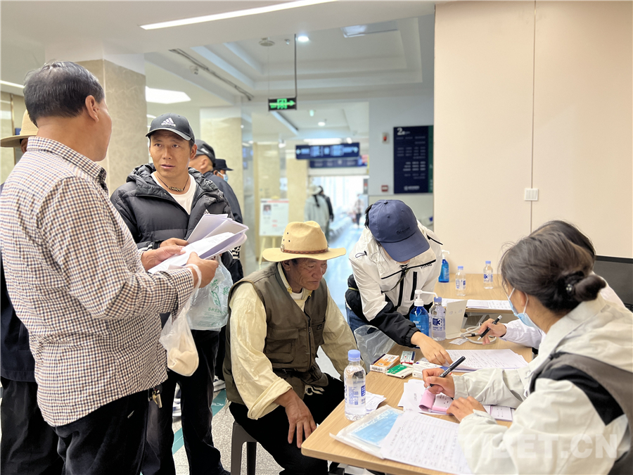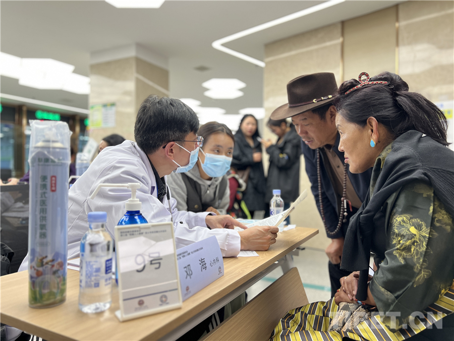15日上午,在西藏阜康醫(yī)院早已布置好的義診點(diǎn),來自全國(guó)各地的院士專家對(duì)號(hào)入座,每個(gè)人旁邊還安排了一位翻譯,一切準(zhǔn)備就緒。前來咨詢、問診的患者根據(jù)自身需求排隊(duì)等待咨詢、檢查?,F(xiàn)場(chǎng)醫(yī)護(hù)人員耐心傾聽市民群眾講述自己的病癥,為他們測(cè)量血壓、把脈,叮囑他們做好疾病調(diào)治、身體保健和疾病預(yù)防等事宜。同時(shí),為就診者仔細(xì)檢查,為有需要的就診者提供病情診斷、用藥指導(dǎo)。