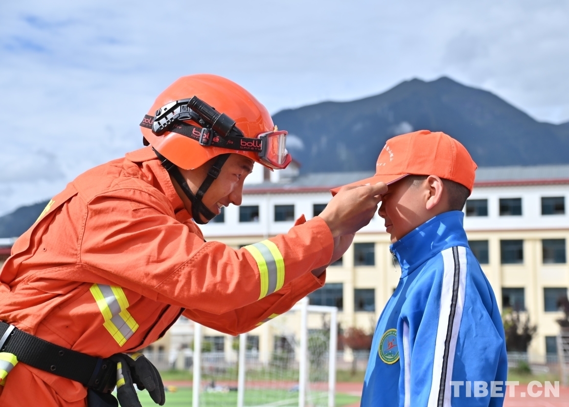 圖為消防員講解防災(zāi)減災(zāi)知識(shí) 攝影:西繞拉翁