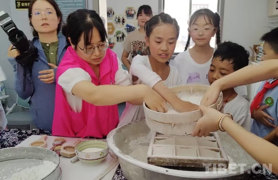 做印糕、纏盤扣、感受沙地文化……在頭蓬老街,理塘縣青少年研學團和錢塘區(qū)義蓬街道少先隊員們感受了一場別開生面的非遺文化盛宴,印糕傳承人俞師傅展示了印糕的制作過程,遠道而來的理塘“伢兒”還動手自己做印糕,纏盤扣。“看著簡單,自己做還是很有難度,但是做成功了又很有成就感!”尕瑪拉姆表示。