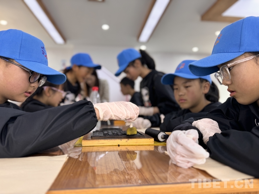 圖為理塘青少年體驗活字印刷術