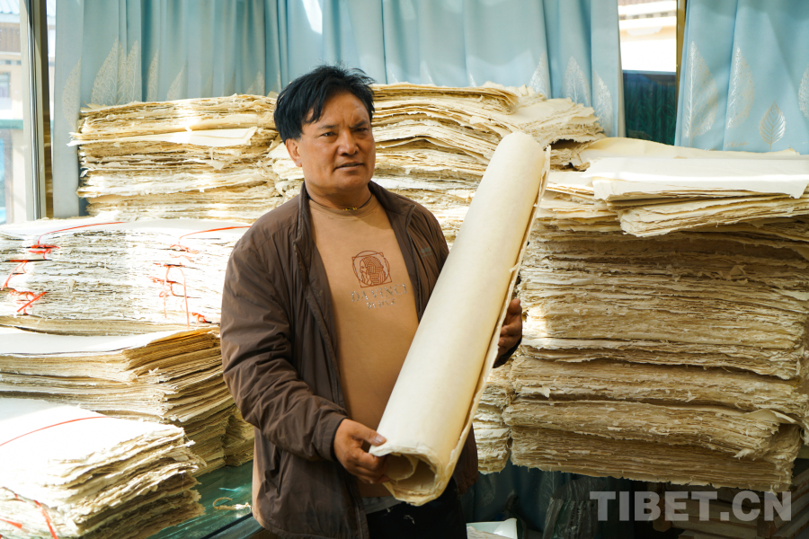 為什么在眾多傳統(tǒng)技藝?yán)镞x擇藏紙且不斷深耕,多登有著自己的思考:“藏紙的傳承相對小眾,很多人慢慢已經(jīng)不做這個行業(yè)了,我不希望它在我們這代失傳。”忙碌的展廳里,村干部們不斷在“講解員”和“銷售員”間來回客串,在介紹藏紙文化的同時幫助忙不過來的多登銷售產(chǎn)品。他們說,村民富了“錢袋子”,村干部樂在“心坎里”。