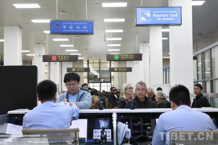圖為吉隆口岸移民管理警察正在驗(yàn)放出境旅客