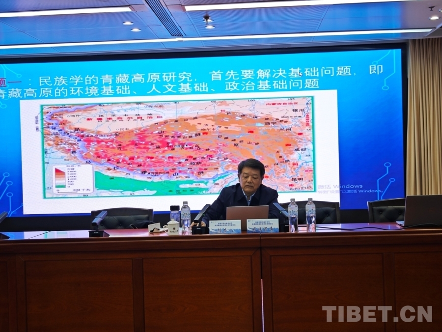 圖為國家民委原副主任、全國人大民族委員會原副主任、中央民族大學教授丹珠昂奔發(fā)言 攝影:蘭周加