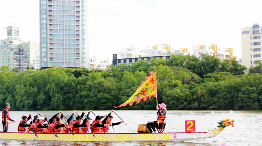 據(jù)了解,本屆運(yùn)動(dòng)會(huì)共有來(lái)自全國(guó)各地的12支男子組隊(duì)伍和8支女子組隊(duì)伍,以及男女混合組8支隊(duì)伍,共約700名運(yùn)動(dòng)員參賽。少數(shù)民族運(yùn)動(dòng)員近400名。在接下來(lái)的幾天中,大家將在三亞河切磋技藝、奮勇?tīng)?zhēng)先,角逐龍舟項(xiàng)目共21個(gè)分項(xiàng)一等獎(jiǎng)的歸屬。其中,香港隊(duì)的龍舟一亮相就贏得了現(xiàn)場(chǎng)觀眾的熱烈掌聲。大家用掌聲與歡呼聲歡迎首次參加運(yùn)動(dòng)會(huì)龍舟項(xiàng)目的香港隊(duì)。本屆運(yùn)動(dòng)會(huì)是香港首次派出代表團(tuán)參賽。
