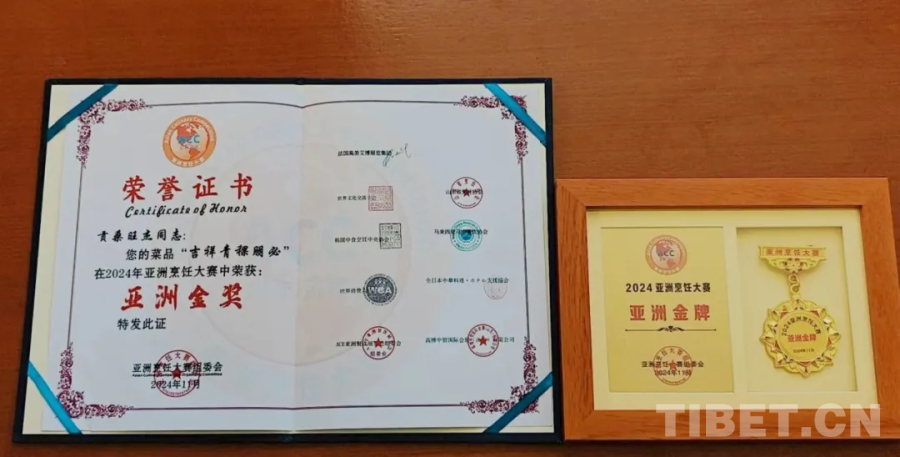 就是這樣一種美味而又小眾的小吃,卻在近日走出西藏,走到亞洲的視野。11月15日至17日,“2024ACE亞洲餐飲展覽會暨亞洲烹飪大賽”在山東濟南開幕,日喀則市技工學校教師貢桑旺杰憑借菜品《吉祥青稞朋必》摘得該大賽“亞洲金獎”。在大賽中,貢桑旺杰以傳統(tǒng)的“朋必”制作方法為基礎(chǔ),創(chuàng)新融入了青稞食材,精心制作出極具日喀則本地風情的菜品——《吉祥青稞朋必》,獲得專家評委和參會同行的肯定。