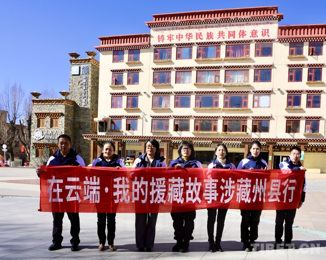 圖為宣講團援藏干部代表在理塘縣格薩爾王廣場合影留念 攝影:龍真多吉
