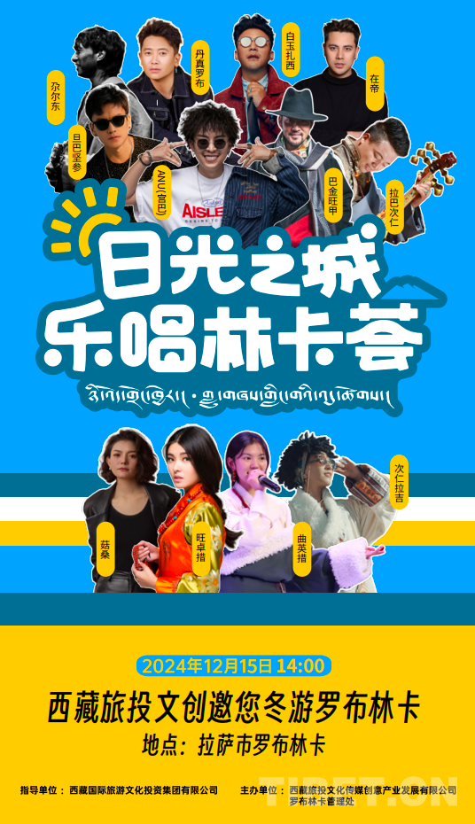 活動(dòng)將于12月15日14:00正式開始,旺卓措、ANU(宮巴)、巴金旺甲、丹真羅布等知名藏族歌手將為觀眾帶來精彩絕倫的表演。觀眾在現(xiàn)場(chǎng)除了感受音樂魅力、領(lǐng)略西藏文化風(fēng)情外,還有豐富的美食及文創(chuàng)集市。