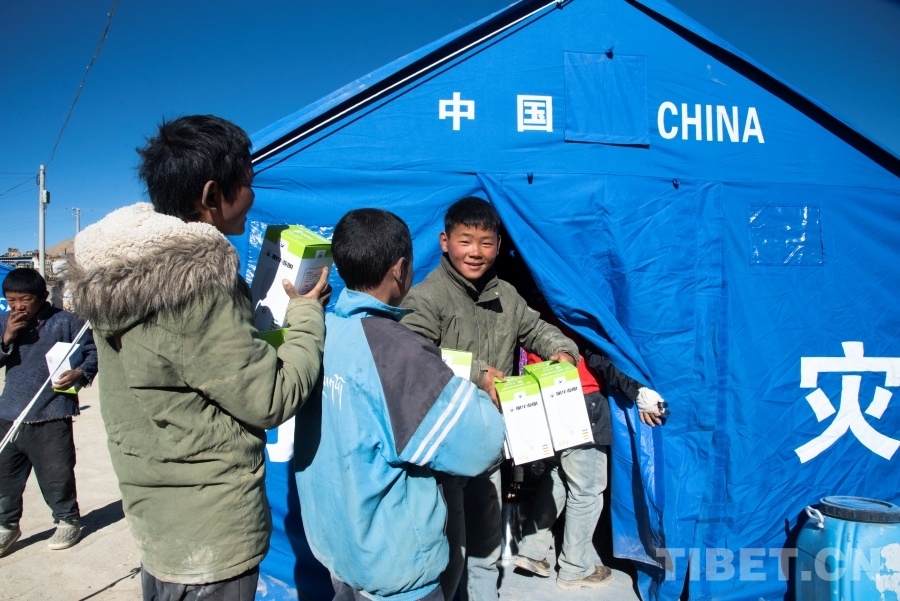 “來(lái),你們拿著這些燈泡跟著我!”在次仁旦增和其他兩位組員的組織下,小男孩們化身為措昂村受災(zāi)安置點(diǎn)的小小志愿者,簇?fù)碇鴱倪@些從山南前來(lái)支援的國(guó)家電網(wǎng)工作人員走進(jìn)一間間帳篷,為站在高處正在架設(shè)電線的叔叔們遞上工具和燈泡。
