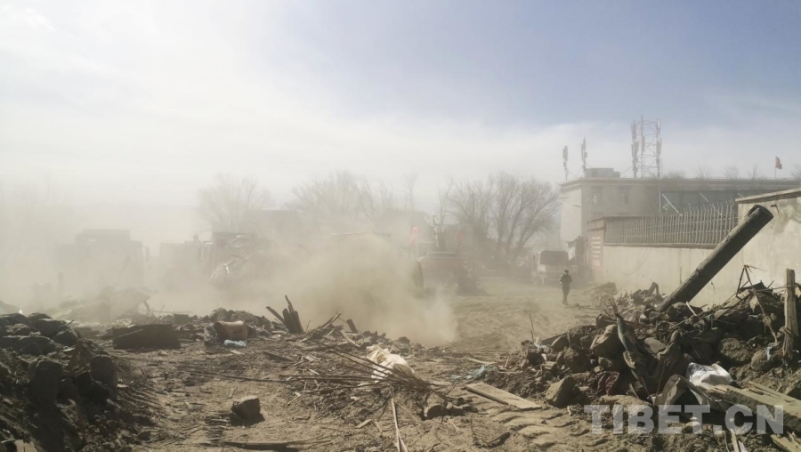 圖為地震重災(zāi)區(qū)西藏自治區(qū)日喀則市定日縣長所鄉(xiāng)除險現(xiàn)場,畫面中右側(cè)的危房、建筑已完成除險 攝影:劉莉