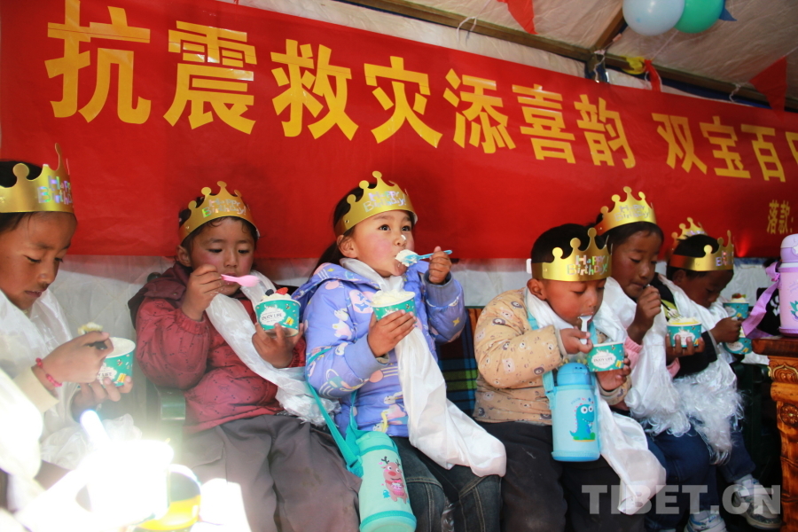 圖為西藏自治區(qū)日喀則市定結(jié)縣江嘎鎮(zhèn)榮貢村的小朋友們參加“情暖震后帳篷,共賀雙寶百日”活動 攝影:劉莉