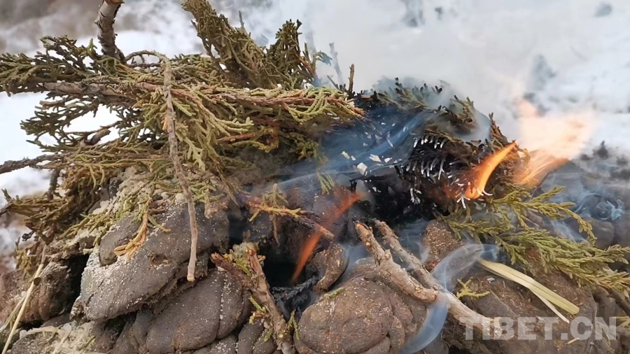 大年初三要早起敬山神。在出發(fā)的前一天,要準備好獻祭的牛奶、青稞酒、清茶,還有“桑”、香、隆達、哈達等。