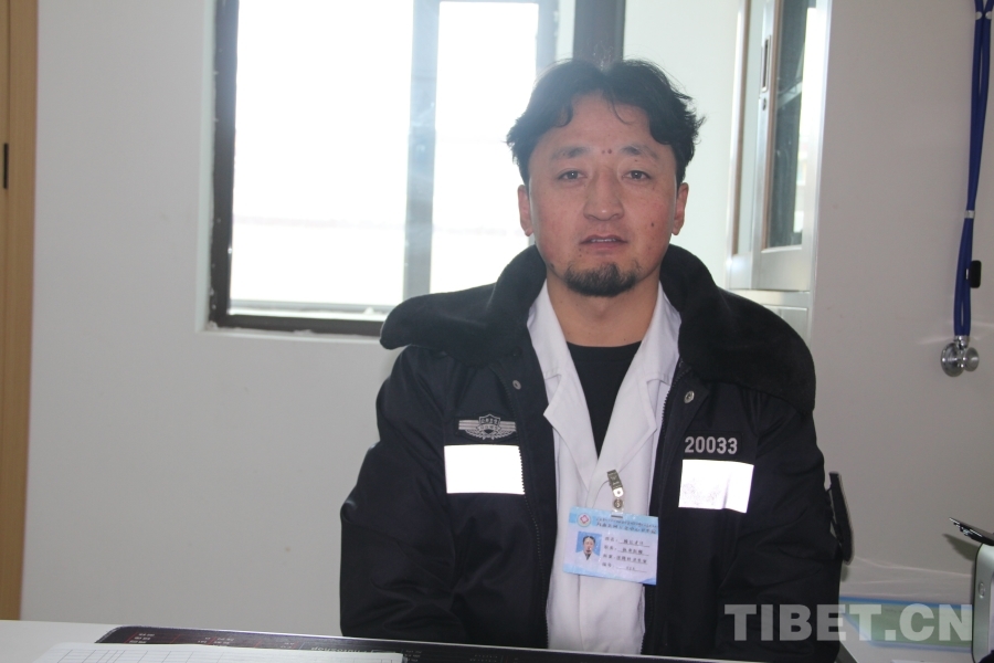 中國西藏網(wǎng)訊 雪白的大褂外披一件藏藍(lán)色冬裝便衣,這便是瑪曲縣阿萬倉中心衛(wèi)生院的執(zhí)業(yè)醫(yī)師楊長才旦。他的胸牌上寫著“科室:洛隆村衛(wèi)生室”,表明他是鎮(zhèn)上五個(gè)大隊(duì)其中之一的村醫(yī),集中在中心衛(wèi)生院輪班為病患看診。