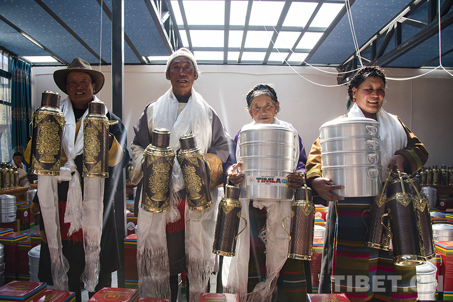 “因受地震的影響,今年的分紅儀式與以往相比簡單一些。我們村兩委經(jīng)過商議,決定用今年的村集體收入為每戶購置多功能蒸鍋、銅壺等作為‘分紅’。一方面,因?yàn)榇蠹椰F(xiàn)在都在安置板房里生活,這些物品對于村民來說實(shí)用性更強(qiáng);另一方面,銅壺也有一定的裝飾作用,為村民簡單的板房內(nèi)增添了一份像樣的‘家具’?!贝妩h支部書記旺加布說。