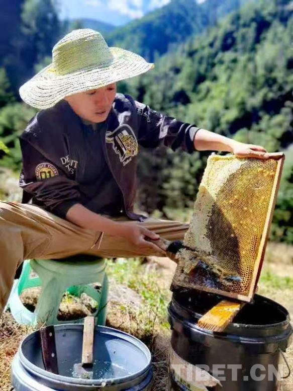 圖為楊斐通過(guò)網(wǎng)絡(luò)助力拓展黑水中蜂蜜銷售渠道 受訪者供圖