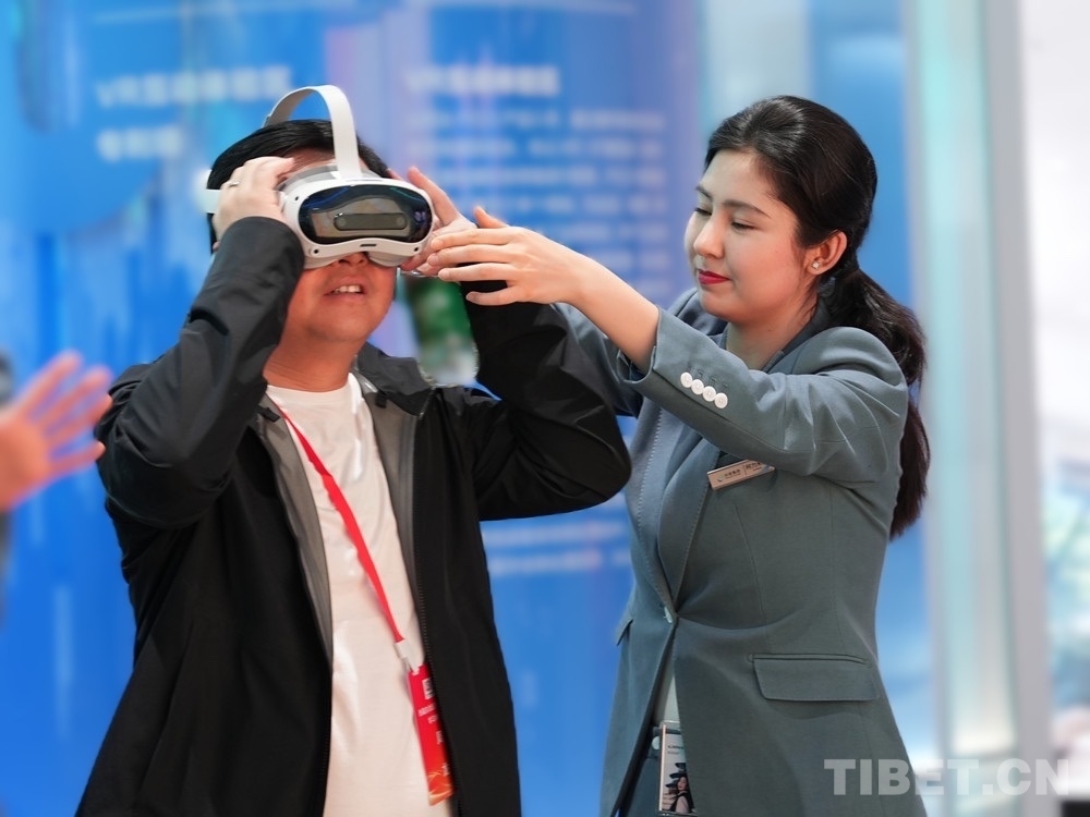 圖為西藏自治區(qū)民營(yíng)企業(yè)家學(xué)習(xí)參觀團(tuán)成員體驗(yàn)VR 攝影:王茜
