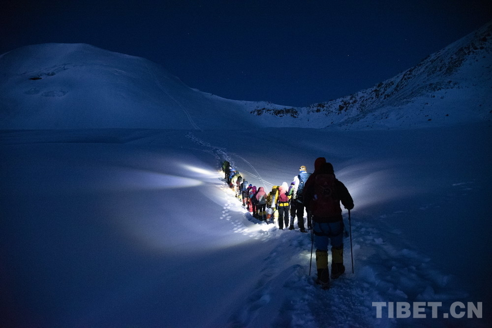 凌晨6時,第一梯隊開始向洛堆峰發(fā)起挑戰(zhàn)。群山之間,閃閃星光,登山愛好者們用腳步丈量著這屬于自己與山的距離。