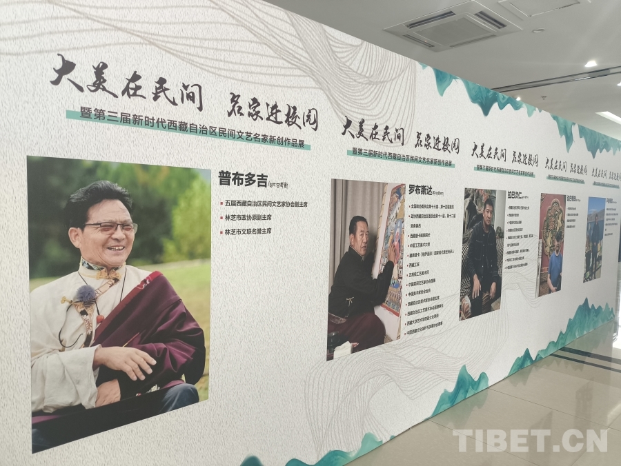 6月20日,“大美在民間——名家進(jìn)校園暨第三屆新時(shí)代西藏自治區(qū)民間文藝名家新創(chuàng)作品展”開展。圖為展覽陳列 攝影:趙釗