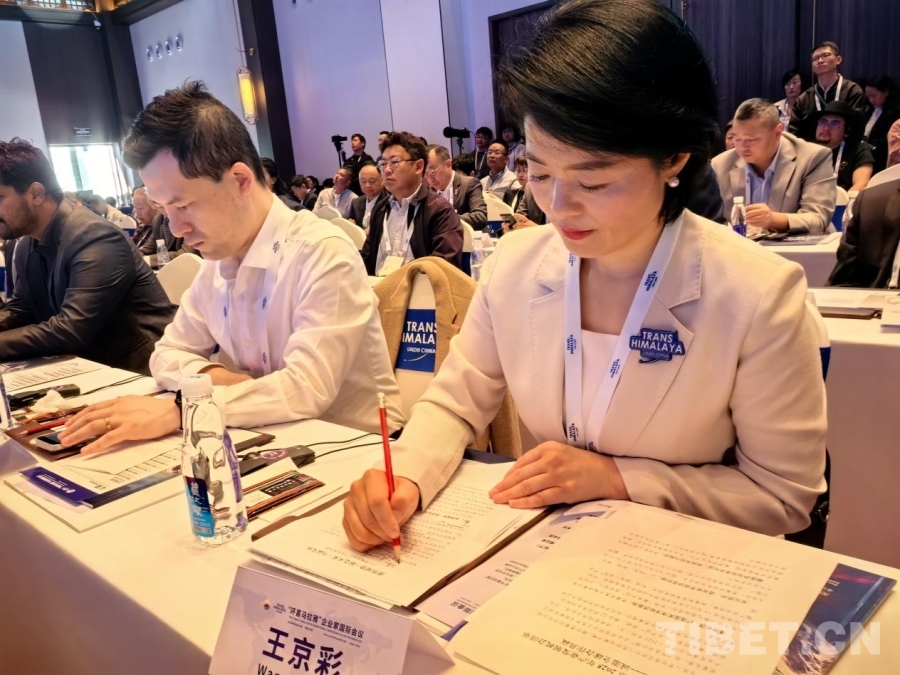 6月27日,“環(huán)喜馬拉雅”企業(yè)家國(guó)際會(huì)議在西藏林芝舉行。圖為現(xiàn)場(chǎng)簽約儀式 攝影:王淑